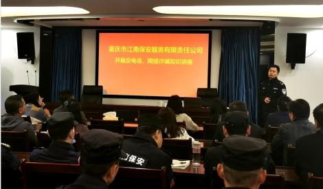 10月20日下午,公司邀请了中国银行、南岸区公安分局反诈民警对全体管理人员和部分保安队员进行“走进江南保安公司 为群众办实事”的防范诈骗宣讲活动。