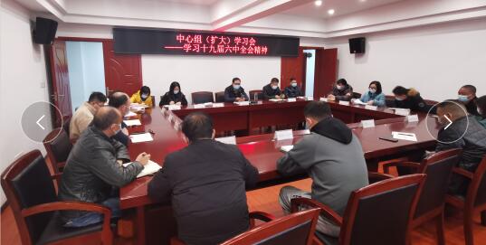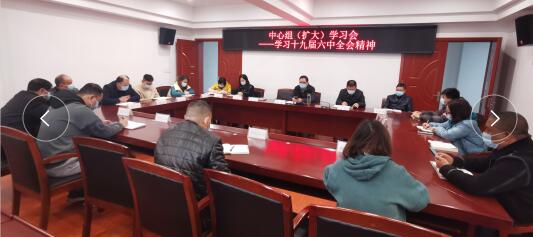 今日上午,公司党委组织召开中心组(扩大)学习会,会议深入学习了党的十九届六中全会精神,会议由党委书记、董事长杨昌民主持,党委委员、班子成员、各部门及业务公司经理参加会议。