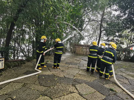 为此,博物馆领导非常重视消防工作,建立了微型消防站,并按季度进行消防演练。而此次消防演练的成员,正是公司派驻抗战遗址博物馆的队员。
