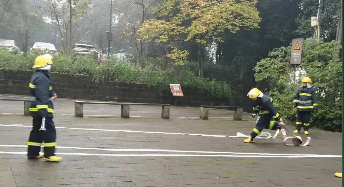 通过系统的消防知识培训后,本次消防演练正式开始。首先是消防监控室发现火情,一方面及时报警,并疏散人群、关闭电源、抢救贵重物品等,另一方面队员们立刻穿上防火服带着灭火设施赶赴现场,找到着火点附近的消防栓,立即着手进行灭火工作。灭火后仔细检查防止复燃,整个演练有条不紊且紧密配合,在很短的时间内消除了火情。