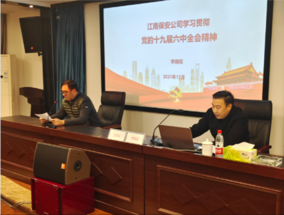12月10日下午,区国资中心副主任李炳泉同志特此到公司宣讲十九届六中全会精神,会议由公司党委书记、董事长杨昌民主持,公司全体管理人员到会学习。
