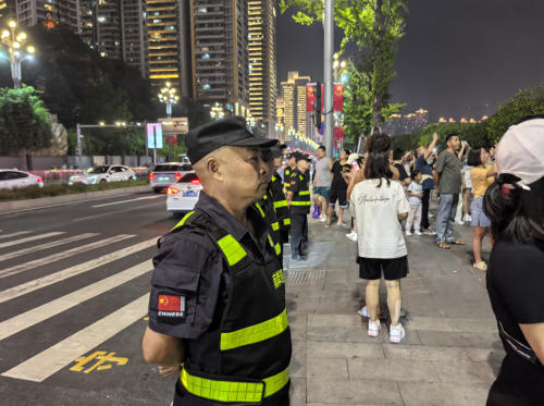 国庆期间,多项大型活动接连上演,江南保安公司的队员们迎难而上,日均派出队员近千人次,以高效组织、精准执行交出了一份“零失误”的漂亮答卷,赢得主办方与市民的高度赞誉。南滨路 “魅力重庆” 无人机灯光秀现场,队员们顶风守夜,化身坚固的“人墙”,在观景核心区域引导数万观众,有效控制人流密度,确保了这一视觉盛宴在安全祥和的气氛中完美呈现;悦来国际博览中心里,车展、动漫展轮番上演,队员们分身有术,应对自如,在车展他们守护着贵重展车,在动漫展他们疏导着激情洋溢的年轻观众,两个截然不同的场景,同一份专业的守护;TF家族三代个人演唱会上,面对热情的歌迷,队员们既坚持安全原则,进行严格的安检和秩序维护,也展现出温情的一面,为粉丝提供必要的帮助,确保了整场演唱会在热烈而有序的氛围中顺利进行;智谷公园清表工作秩序维护中,队员坚守现场,保障了施工进程的平稳推进,为城市的发展默默贡献着力量。
